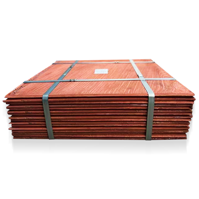 陰極銅為玫瑰紅色金屬,柔軟,有金屬光澤,富裕延展性,易彎曲、強度較好,有良好的導電性和導熱性,銅及其化合物無磁性。陰極銅主要在電子、電器、造船、建筑、汽車工業、國防工業及各種冷凝劑等方面有特定的用途。 每片重量146±5kg ,尺寸為103×105cm,平滑、整齊、美觀。陰極銅產品采用永久不銹鋼陰極電解技術。